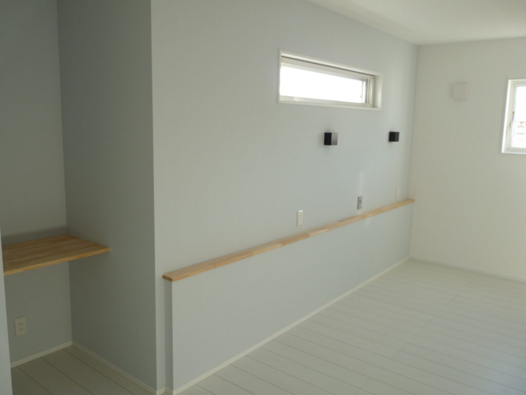 全体に、ホワイトを基調に、所々でアクセントパネルが目を引きます。耐震等級3の長期優良住宅に加えて、
